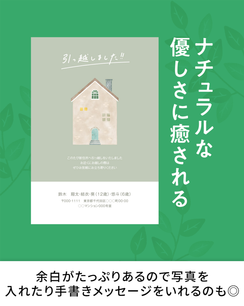 ✅身内や親しい間柄の方には、新居の雰囲気が伝わりやすい「写真ありタイプ」